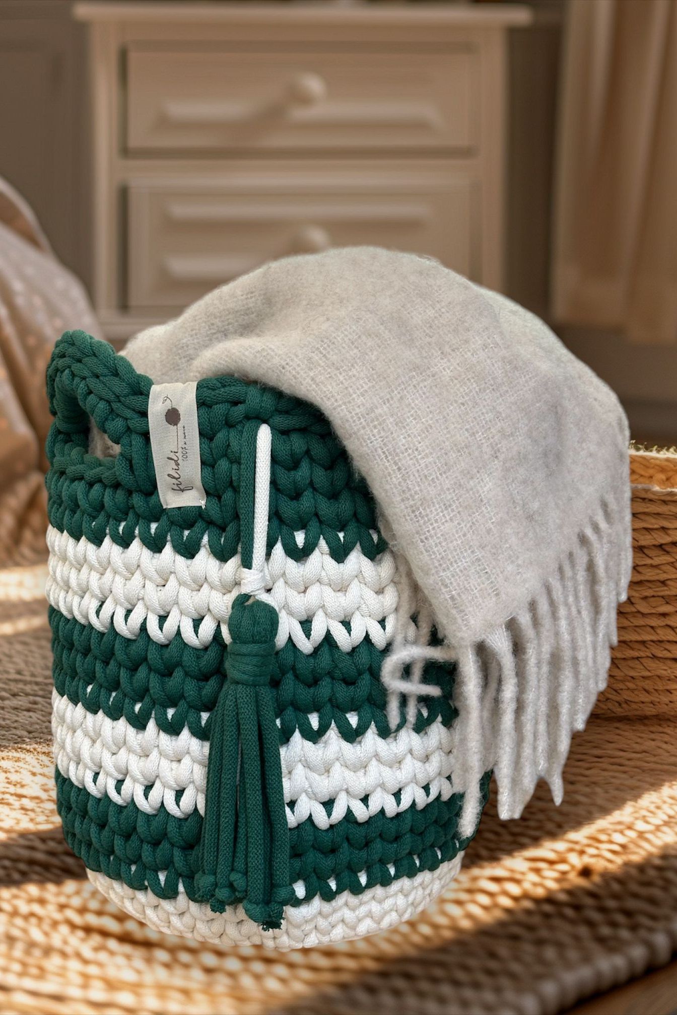 Cesto Righe Pine Green/ Natural