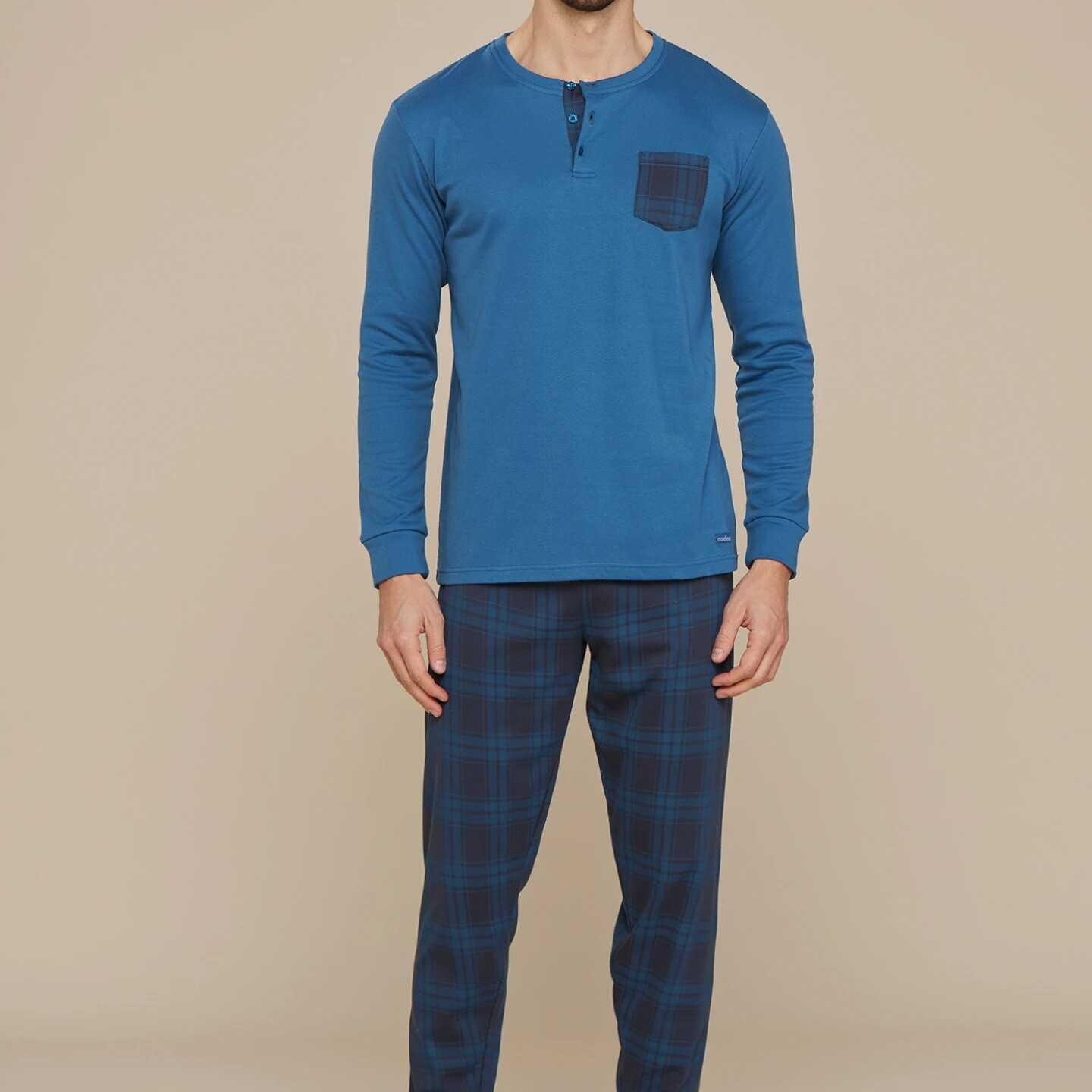 Pigiama uomo in caldo cotone felpato, top azzurro…