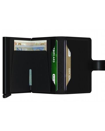 Il meccanismo brevettato consente di estrarre le carte con un unico, semplice movimento e permette un loro utilizzo immediato. L’alluminio protegge da piegamenti, rotture e comunicazioni senza fili non desiderate.