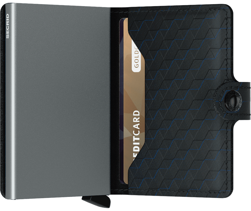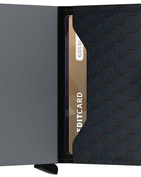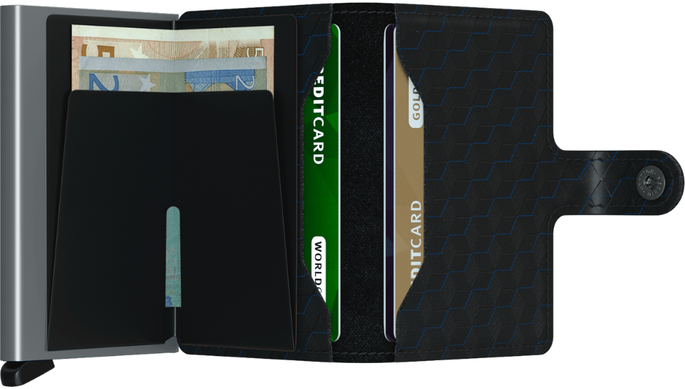 Il meccanismo brevettato consente di estrarre le carte con un unico, semplice movimento e permette un loro utilizzo immediato. L’alluminio protegge da piegamenti, rotture e comunicazioni senza fili non desiderate.