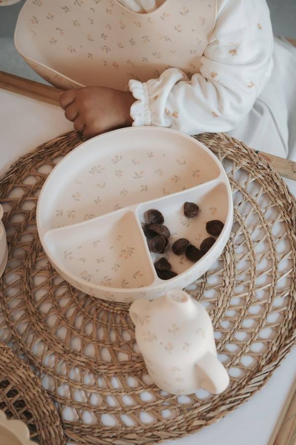 Il Dinner Set di Bamboom, in 100% silicone LFGB, è pensato per accompagnare i bambini nei pasti con sicurezza e praticità.
