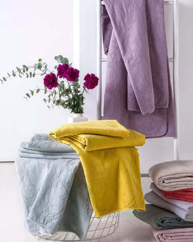 Copriletto matelassè 100% cotone con trattamento “Stone Washed” per un capo dai colori unici ed un aspetto vissuto