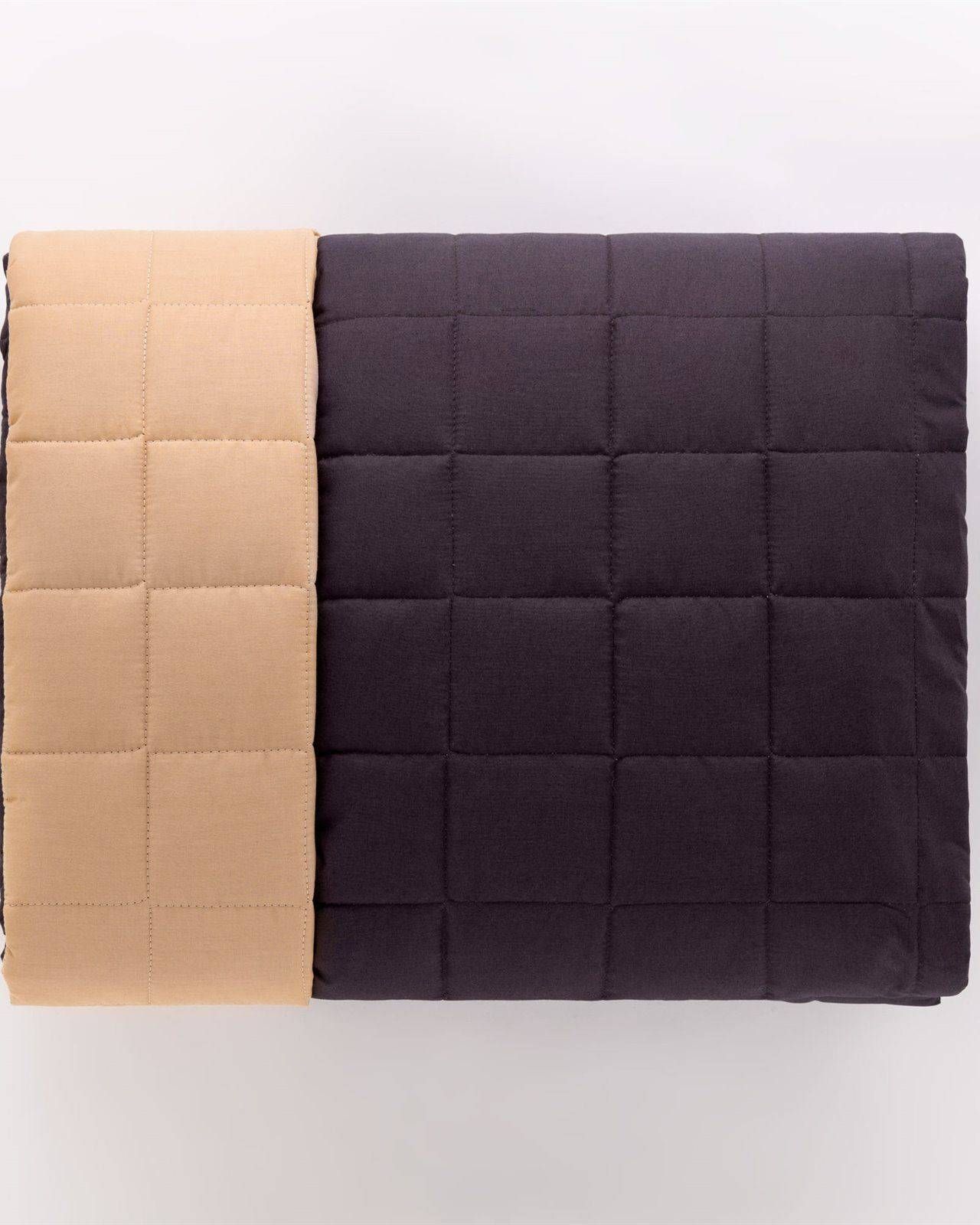 Trapuntatura a quadri cm 8×8, due angoli tondi, finitura con bordino.