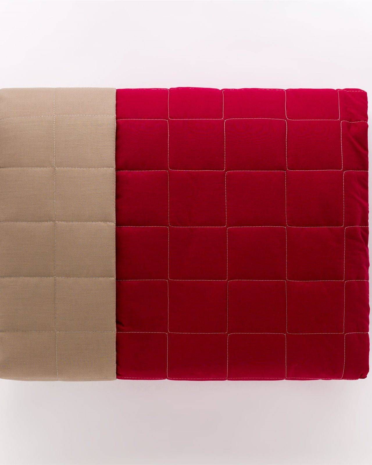 Trapuntatura a quadri cm 8×8, due angoli tondi, finitura con bordino.