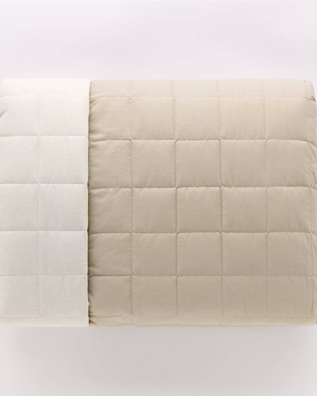 Trapuntatura a quadri cm 8×8, due angoli tondi, finitura con bordino.