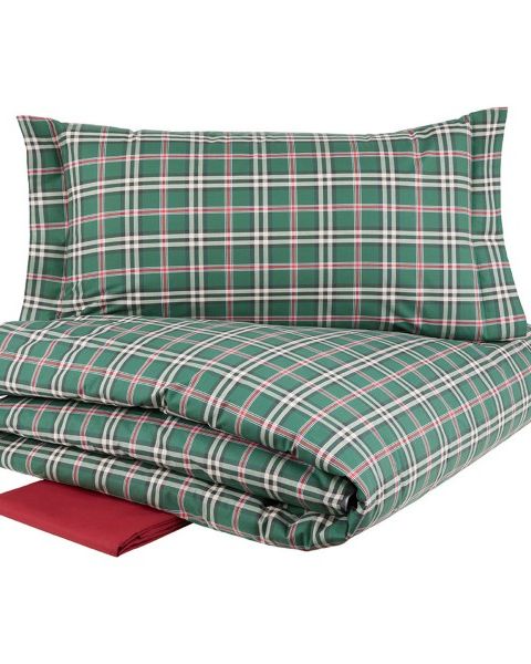Completo copripiumino scozzese realizzato in percalle di cotone tinto filo 200 T.C.