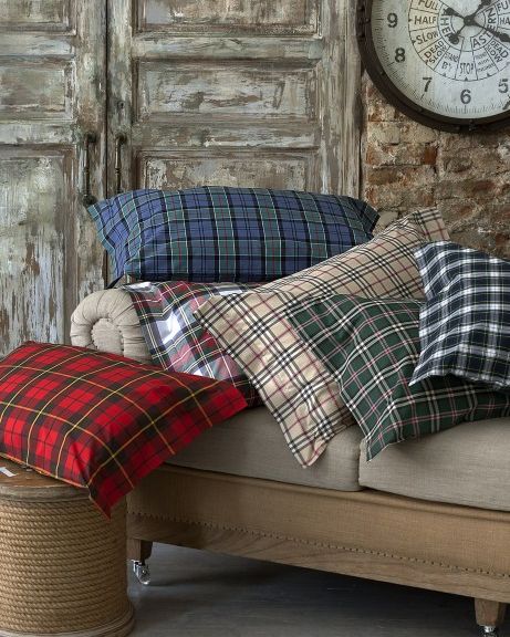 La sacca copripiumino e le federe a 2 volant sono in fantasia scozzese, mentre il lenzuolo sotto con angoli è in tinta unita. Vesti la tua camera da letto con lo stile e la qualità inconfondibile di Tessitura Randi.