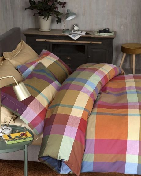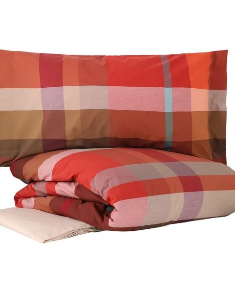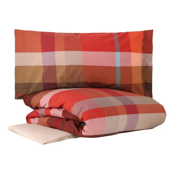Completo copripiumino scozzese realizzato in percalle di cotone tinto filo 200 T.C.