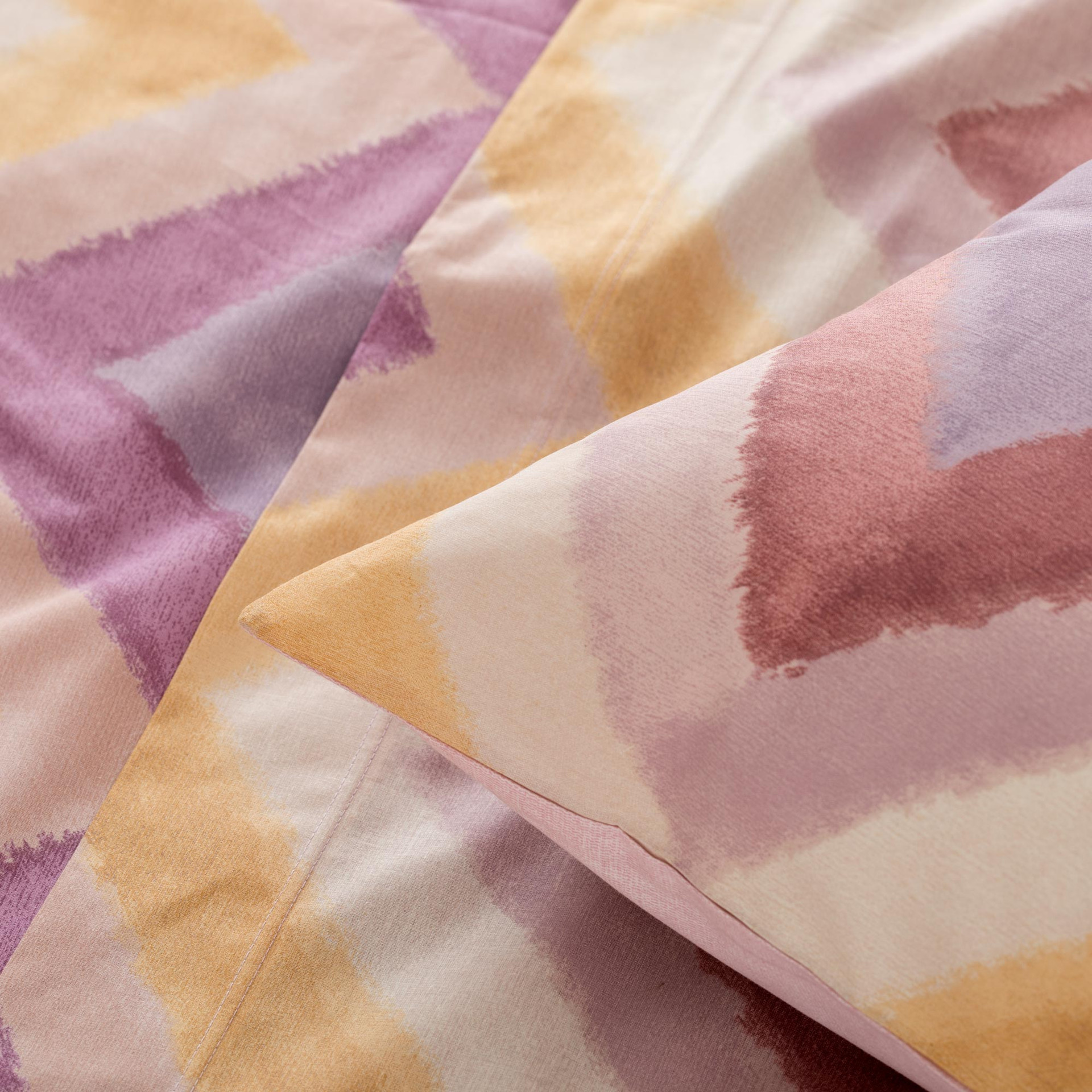 Il completo lenzuolo copriletto Arben in 100% cotone esprime un’eleganza morbida e naturale attraverso uno chevron delicato dal segno pittorico leggero ed etereo, come tracciato da pennellate ad acquerello. Le sfumature cromatiche scorrono armoniose sul tessuto, creando un effetto visivo raffinato e contemporaneo, ideale per ambienti luminosi e rilassanti. Il cotone dona una mano fresca e piacevole, perfetta per accompagnare il riposo quotidiano.