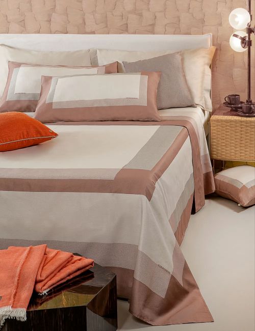 Completo lenzuola con balza a giorno in raso di puro cotone 300 T.C. Il lenzuolo e le federe sono stampati con design personalizzato dall’iconica texture “OP” Occhio di Pernice; il sotto con angoli è in raso tinta unita. Vesti di eleganza la tua casa, con l’esperienza di Tessitura Randi e il design iconico Borbonese.