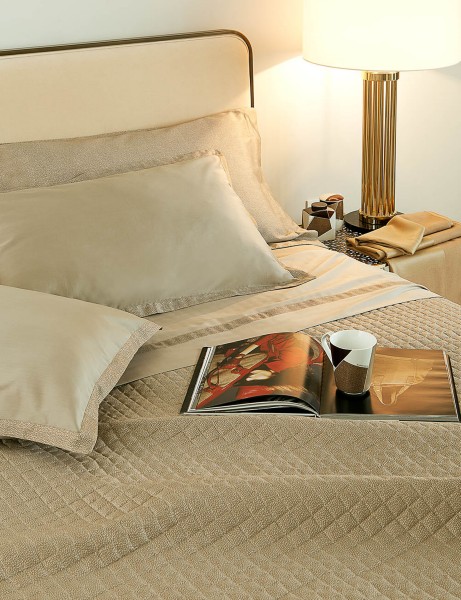 Il lenzuolo e il perimetro delle federe a 4 volant hanno un profilo applicato stampato con design personalizzato dall’iconica texture OP Occhio di Pernice; il sotto con angoli è in raso tinta unita. Vesti di eleganza la tua casa, con l’esperienza di Tessitura Randi e il design iconico Borbonese.
