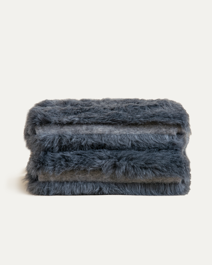 Soffice plaid in Lana cotta con ecopelliccia, double face, backside Bamboo