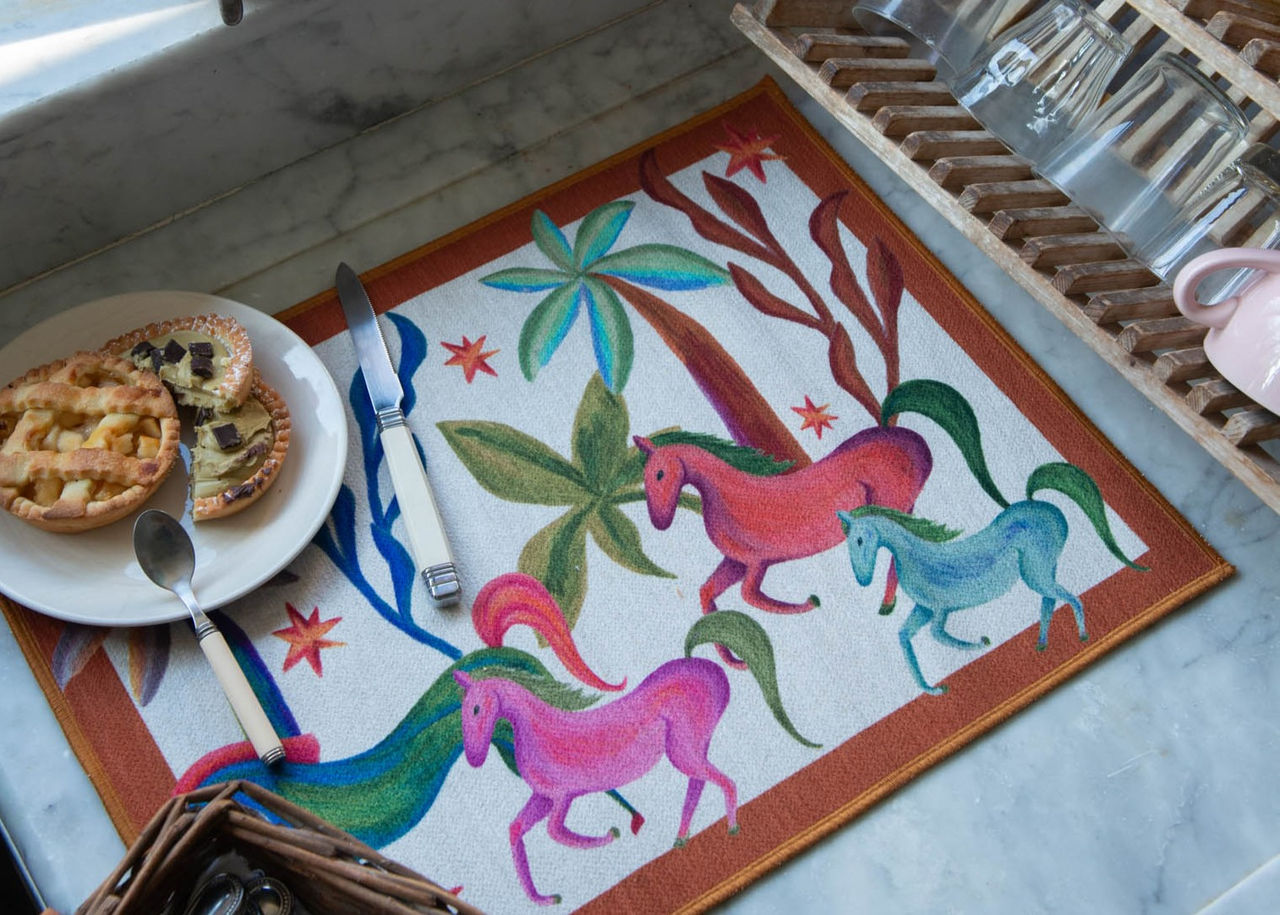 La tovaglietta americana colorata AGNES è un piccolo manifesto alla gioia, un’esplosione di vitalità e immaginazione. Perfetta per chi ama portare in tavola un tocco di arte folk, per chi non prende tutto troppo sul serio e vuole iniziare la giornata con un sorriso e un pizzico di magia. È per chi ha dimenticato i contorni del reale e ha scelto di danzare tra quelli della fantasia.