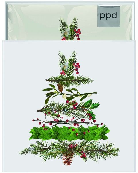 Tovaglioli di carta stampati in confezione in scatola. Ogni singola scatola di tovaglioli viene fornita con 20 tovaglioli per il pranzo, avvolti in un foglio di plastica.