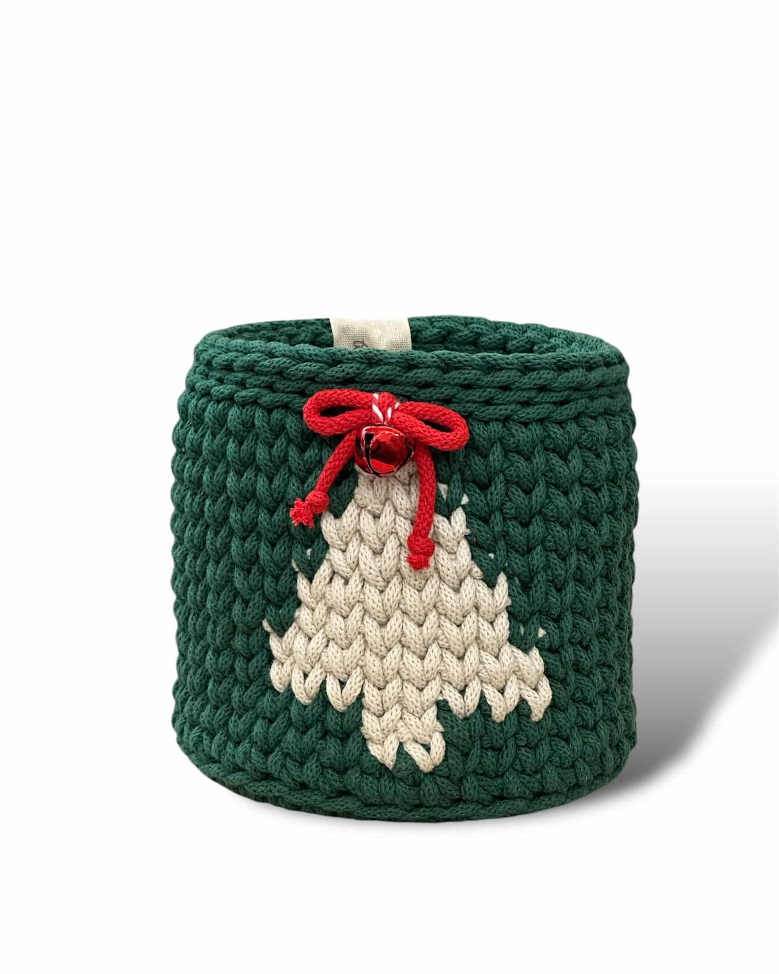 I cestini all’uncinetto con decorazioni natalizie sono un modo incantevole per arricchire l’atmosfera festiva nelle case. Realizzati in filati di cotone BOBBINY, con base in legno del diametro di 15 cm e altezza 15 cm, in colori tipici del Natale, come rosso, verde, bianco e dorato, questi cestini possono variare in forma e dimensione.