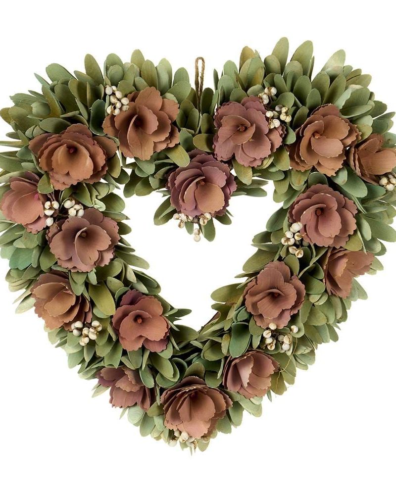 Ghirlanda in legno decorata con fiori.