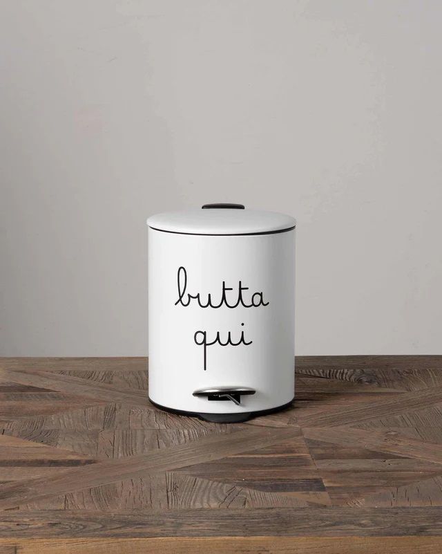 Pattumiera da interno 5 litri decoro Butta qui – bianco- Dim. 25 x 19 x h27 cm
