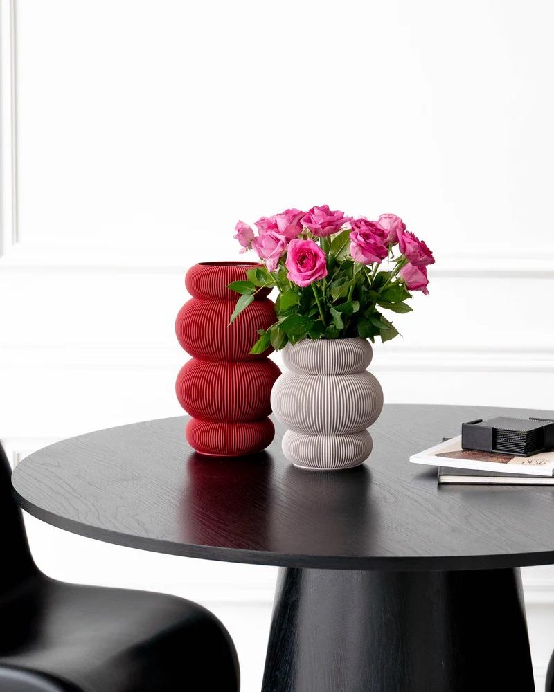 Il vaso Halo colpisce per il suo linguaggio di design organico che consiste in anelli impilati di diverse dimensioni uno sopra l’altro, che gli conferiscono un aspetto unico e scultoreo.