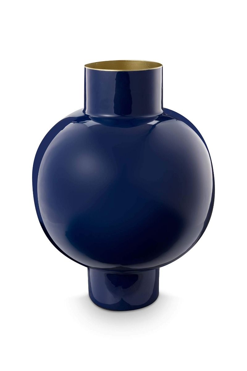 Dai un tocco di colore alla tua casa con questo grande vaso di metallo blu.