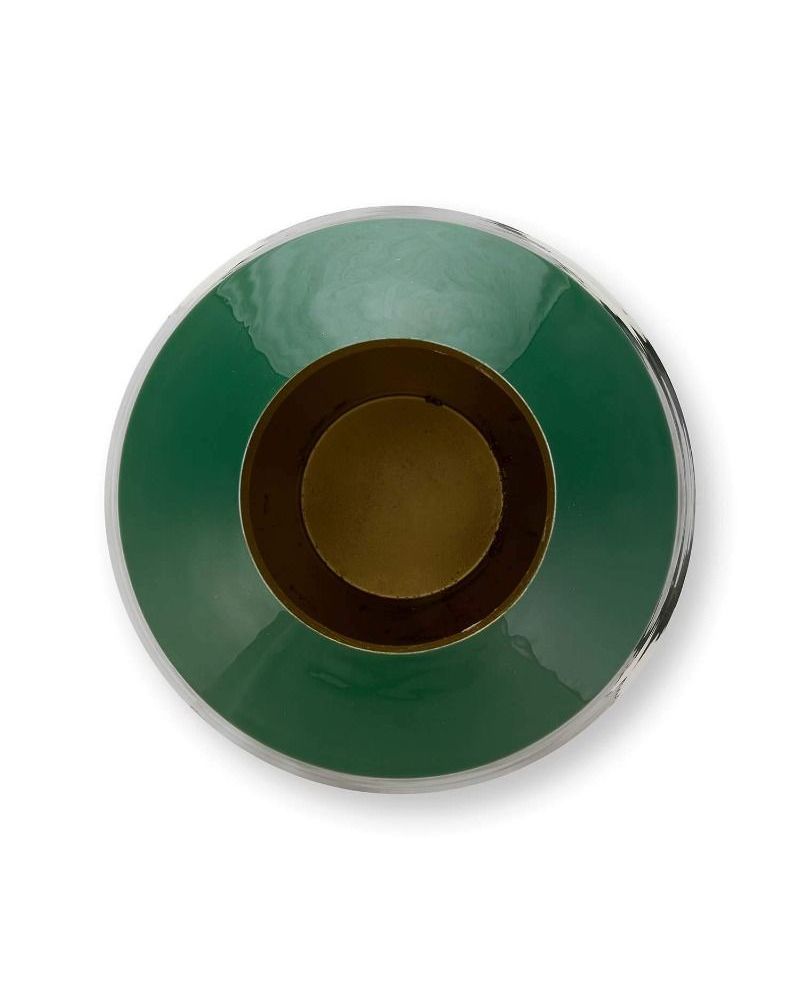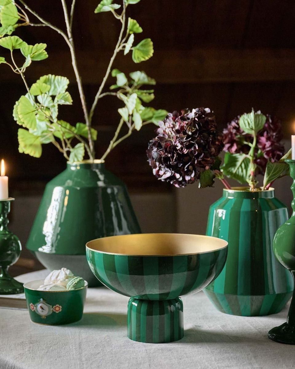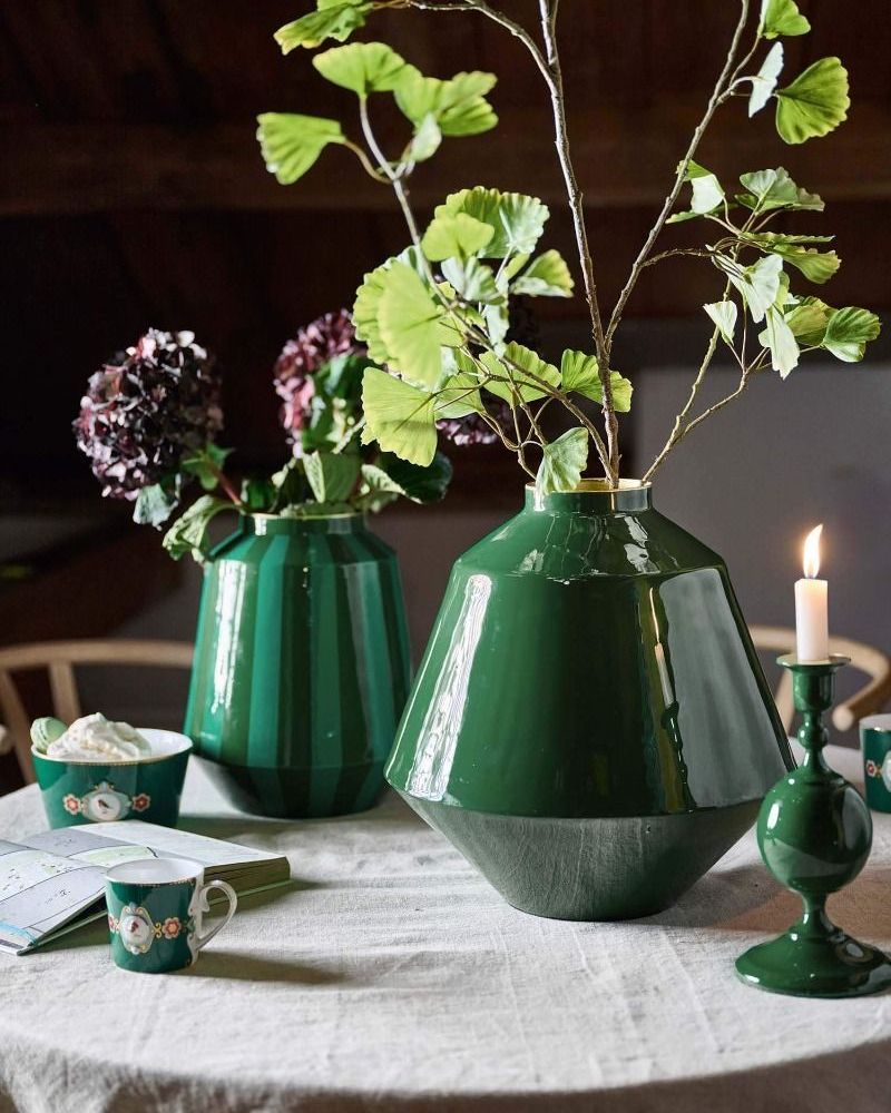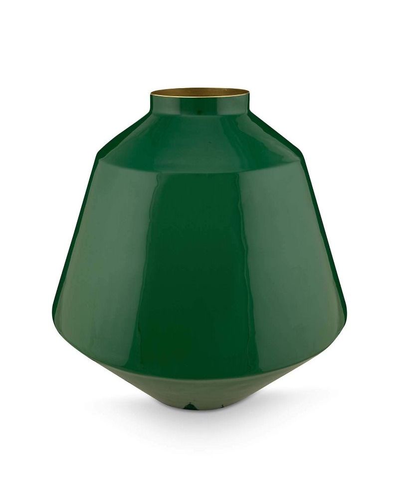 Dai un tocco di colore alla tua casa con questo grande vaso in metallo verde dalla forma stravagante.
