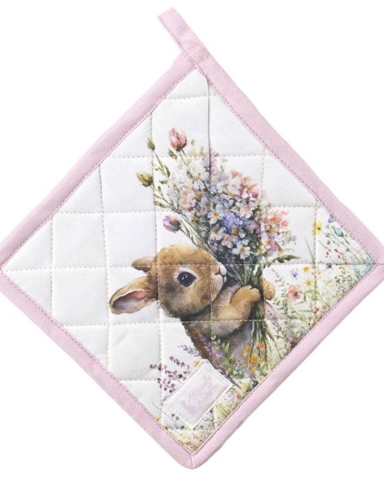 Presina cucina pasquale in cotone con conigli “Dorothy”, 18×18 cm.