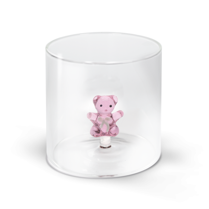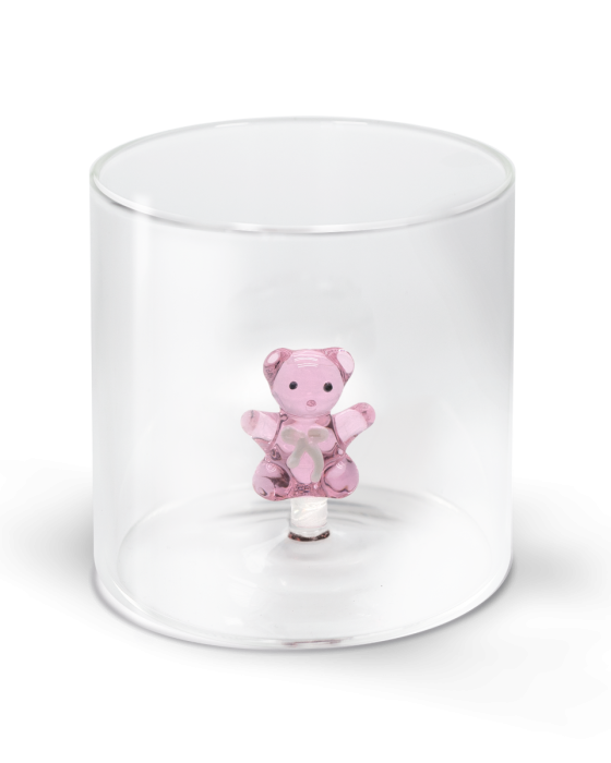 Bicchiere in vetro borosilicato con soggetto in vetro colorato all’interno figu