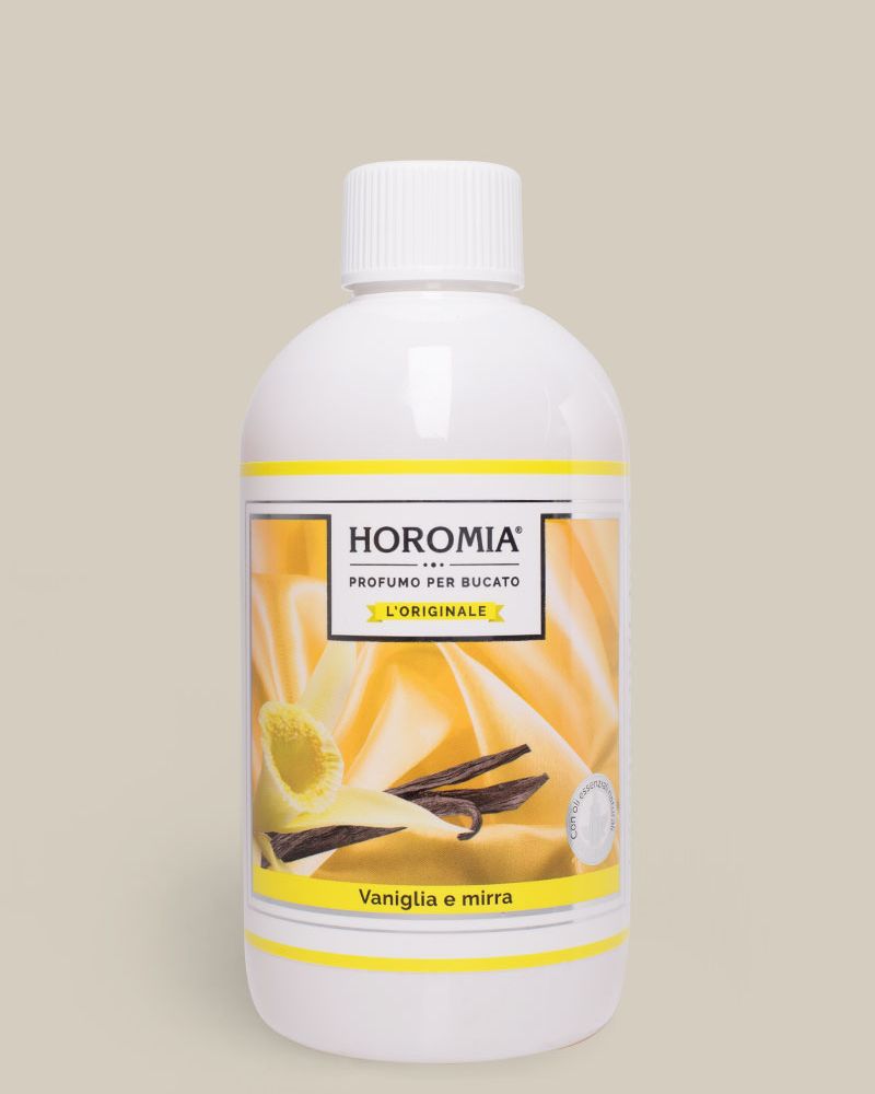 Le essenze Horomia sono molto piรน di semplici profumi per il bucato, dedicate alle donne che amano un tocco di stile in piรน, bastano poche gocce aggiunte in lavatrice per ottenere capi profumati in grado di regalare sensazioni di benessere per tutta la giornata. Disponibili in formato da 50 ml, 250 ml e 500 ml