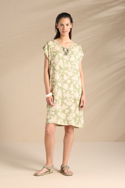 Abito donna estivo in viscosa. Manica corta e collo tondo con laccetto.