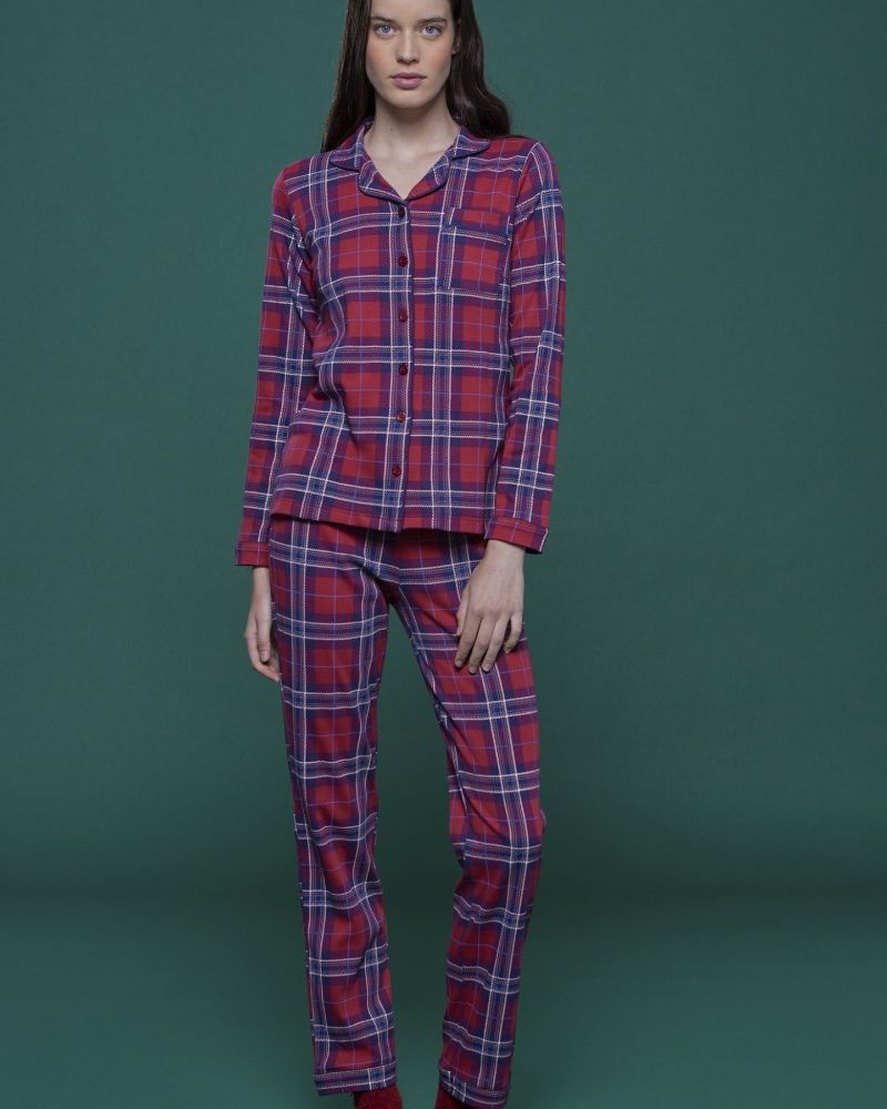 Red Scotty Pigiama Donna in Caldo Cotone Rosso