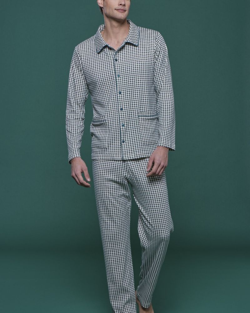 Pigiama Uomo inย caldo cotoneย con pantalone con stampa vichy e top stampato con abbottonatura camicia