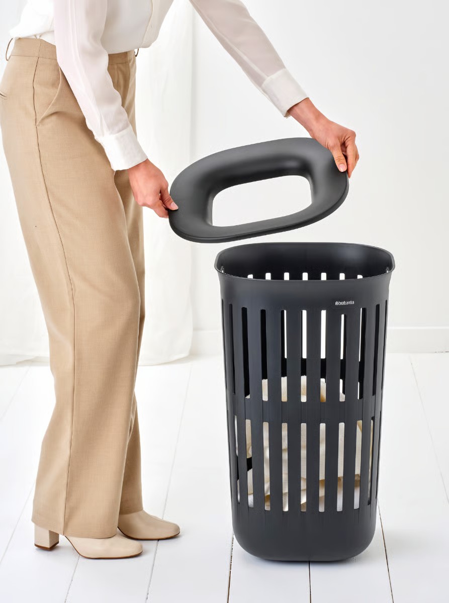 Con il cesto portabiancheria Collect-It da 55 litri di Brabantia fare il bucato è più semplice e più bello. Grazie al design sottile, si adatta perfettamente a un angolo o a una parete. Grazie al coperchio con apertura Quick-Drop, puoi metterci facilmente i vestiti. È il momento del bucato? Utilizza la comoda impugnatura laterale per tenere fermo il cesto e rimuovi il coperchio. Questo elegante portabiancheria è realizzato al 100% in plastica riciclata post-consumo ed è dotato di pratici fori di ventilazione per far respirare la biancheria. Il tutto con stile! Un bellissimo cesto da tenere in camera da letto, in bagno o in lavanderia.