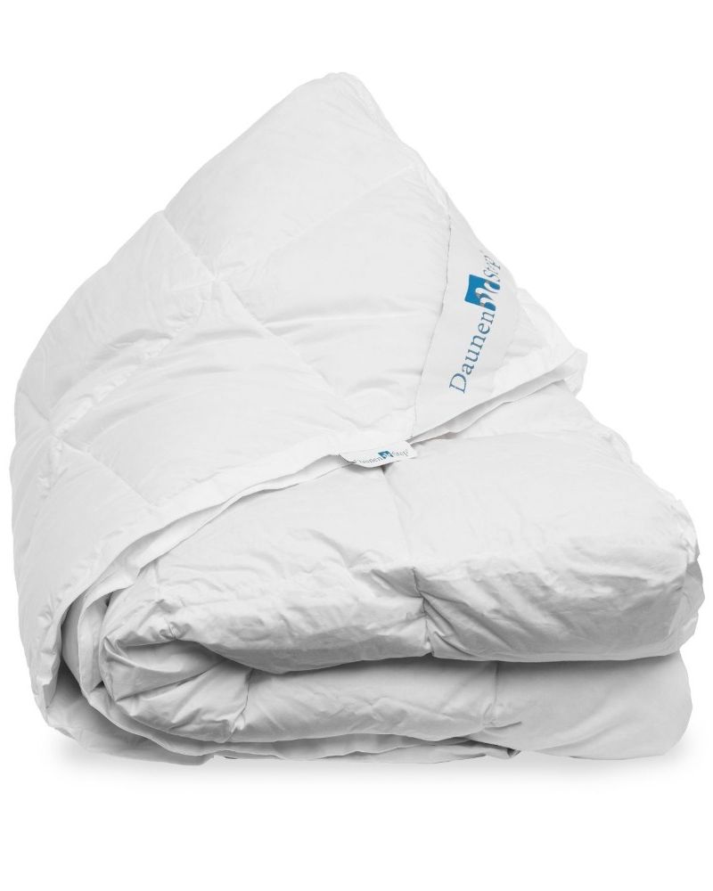 La trapuntatura a quadri fissi, mantiene il calore uguale su tutta la superficie del capo, mentre lo speciale bordo piatto con asole è costruito per far sì che due piumini possano essere uniti insieme.