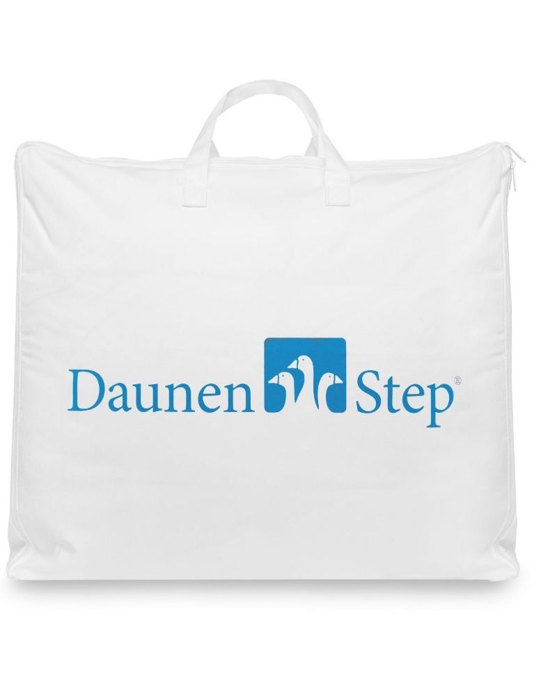 Una delle peculiarità offerta dai piumoni DaunenStep è la trapuntatura a quadri fissi che mantiene il calore uguale su tutta la superficie del capo, mentre lo speciale bordo piatto con asole è costruito per far sì che due piumini possano essere uniti insieme.