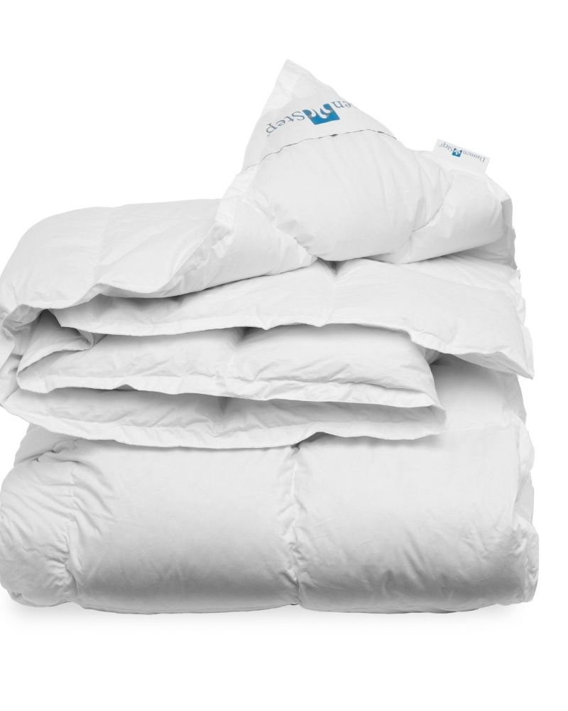 Una delle caratteristiche uniche offerta dai piumoni Daunenstep è la trapuntatura a quadri fissi che mantiene il calore uguale su tutta la superficie del capo, mentre lo speciale bordo piatto con asole è costruito per far sì che due piumini possano essere uniti insieme.