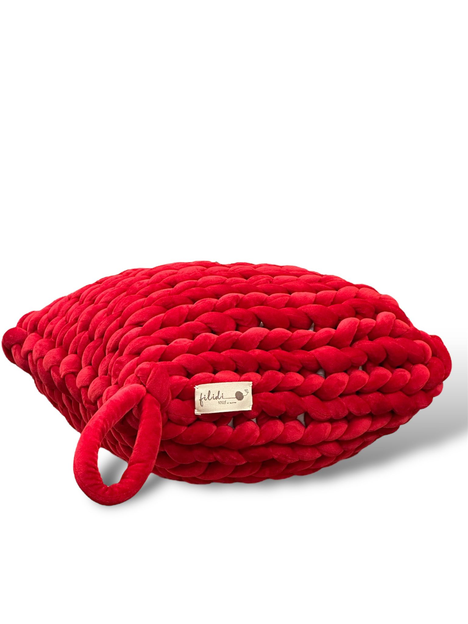 Il cuscino ha una forma generosa e squadrata, conferendo un aspetto elegante e contemporaneo. Le cuciture, realizzate con cura artigianale, garantiscono non solo resistenza, ma anche un tocco di raffinatezza. Il manico permette di spostarlo comodamente in ambienti e situazioni diverse. Disponibile in una gamma di colori ricchi e sofisticati, dal blu profondo al verde smeraldo, il cuscino si adatta perfettamente a qualsiasi stile di arredamento, dal moderno al vintage.