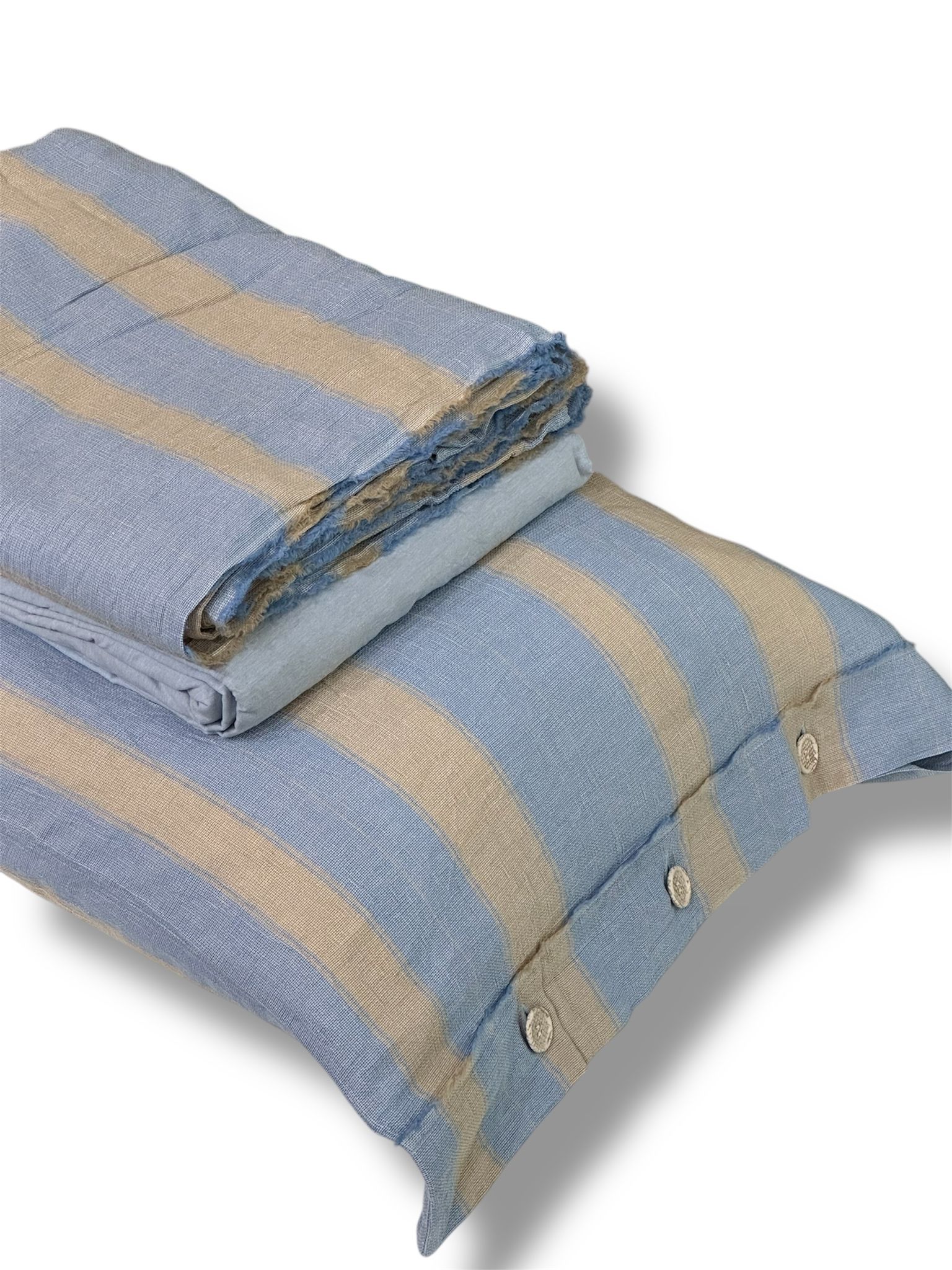 Contenuto della confezione: 1 lenzuolo sopra 250×280 cm ; 1 lenzuolo sotto con angoli 180×200 cm ; 2 federe 50×80 rifinite con bottoni e frangia.