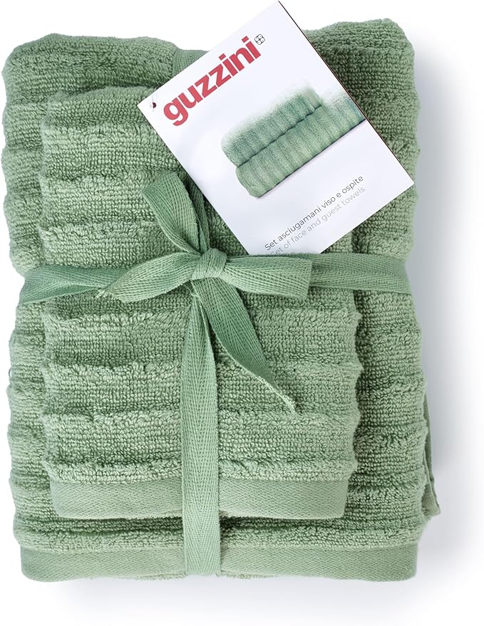 Il set include un asciugamano viso generoso di 60×110 cm e un asciugamano ospite di 40×60 cm. Il 100% cotone lavorato twist offre un’eccezionale sensazione di morbidezza e assorbenza