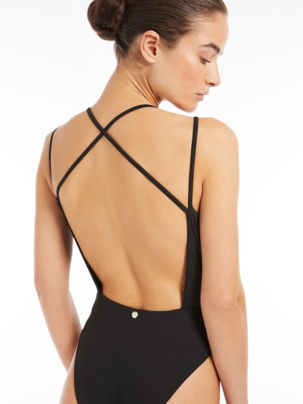 Modello con coppe estraibili, caratterizzato da ampia scollatura sul retro con lacci incrociati sulla schiena. Completamente foderato è rifinito con medaglietta logata color oro realizzata in una particolare lega resistente al cloro, al sale e alle creme solari.