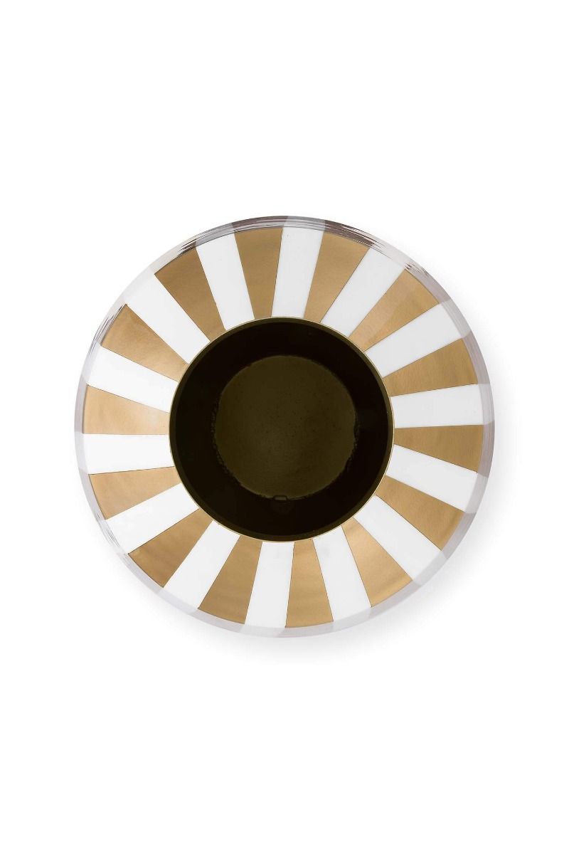 Vaso In Metallo Strisce Bianco Oro 35cm