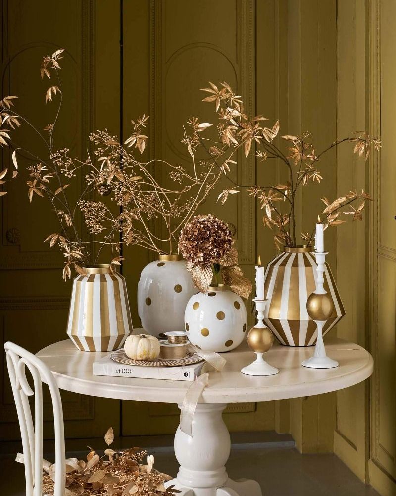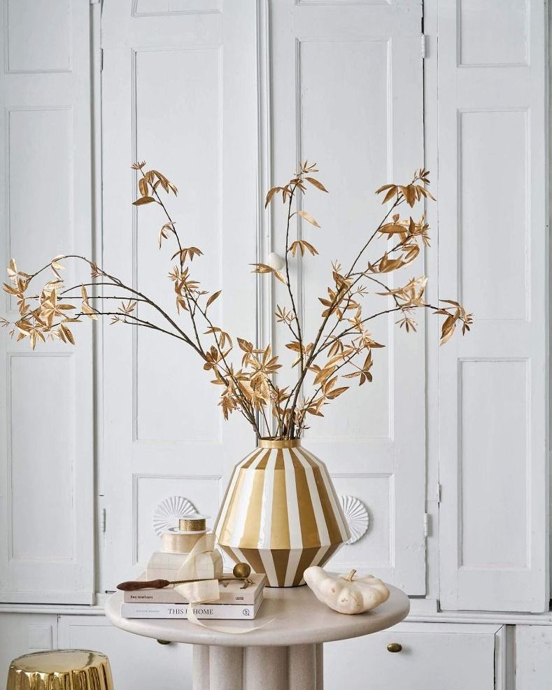 Decora festosamente la tua casa con questo grande vaso in metallo bianco/oro.