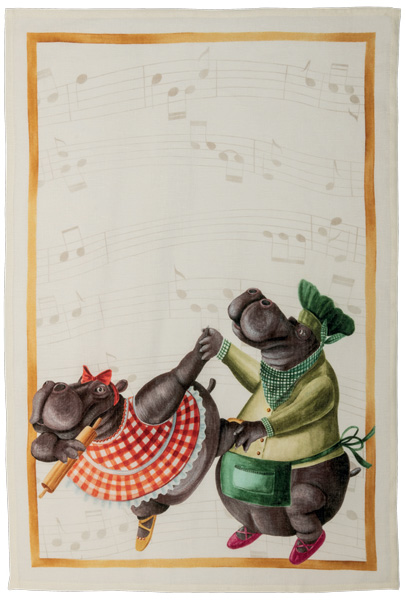 Canovaccio in lino stampato, fantasia ippopotami
