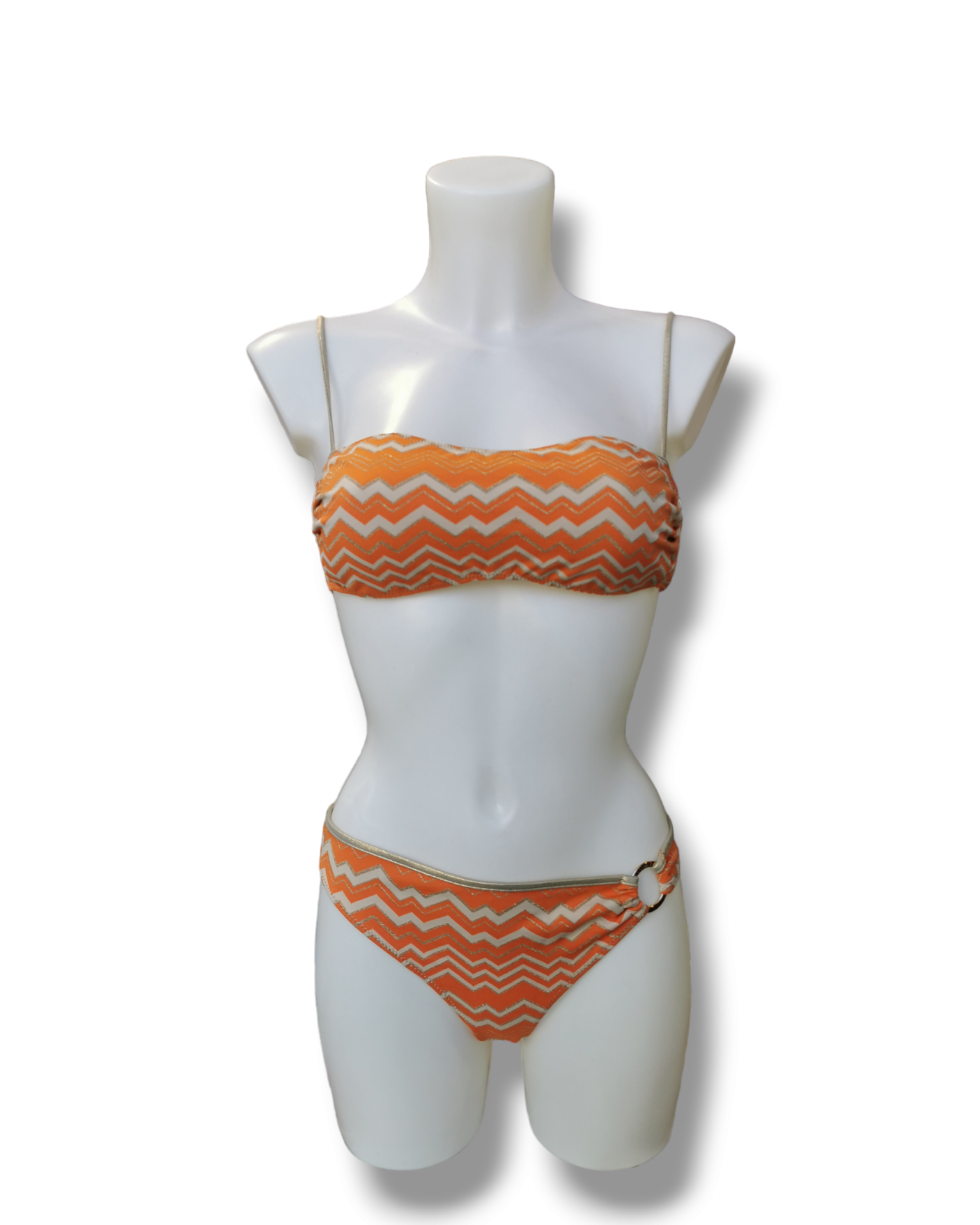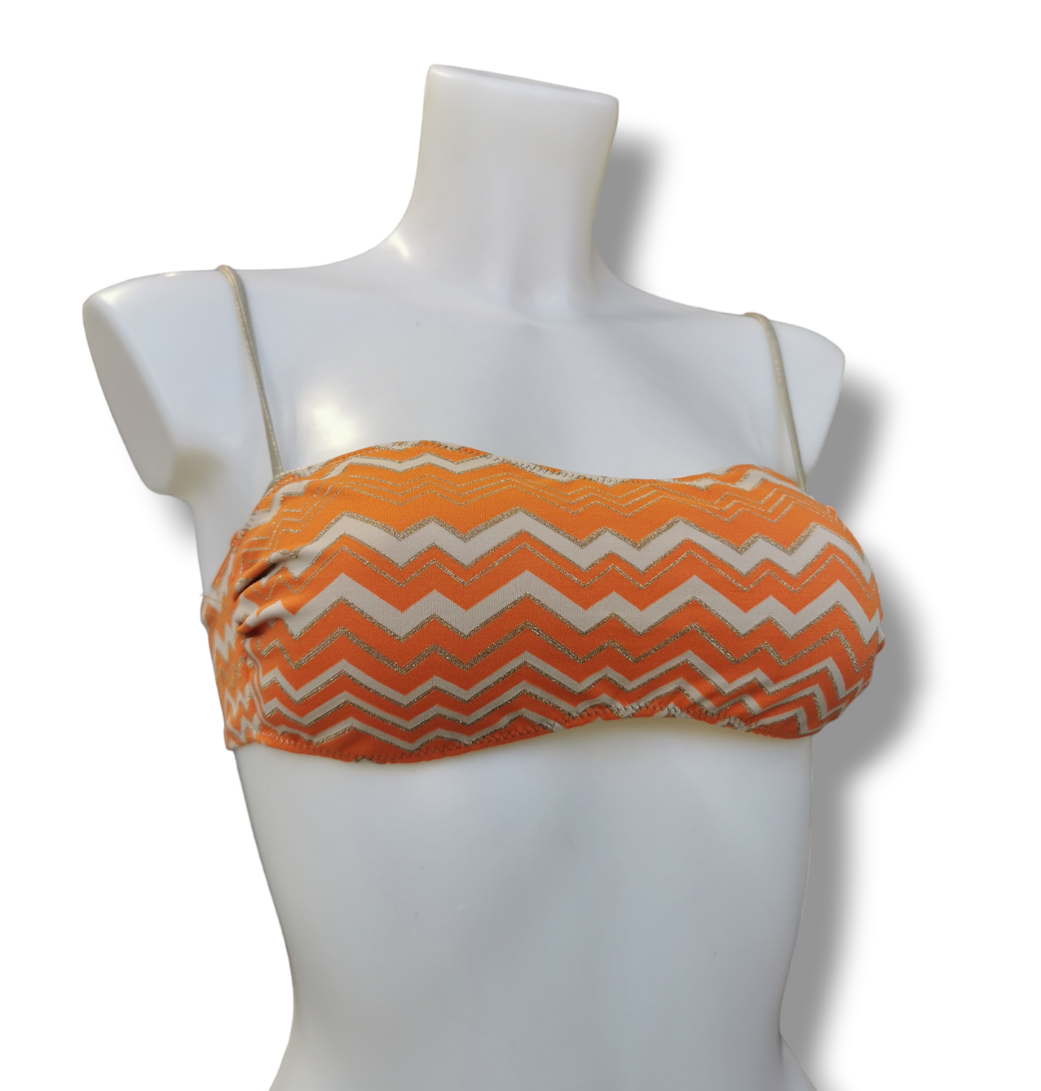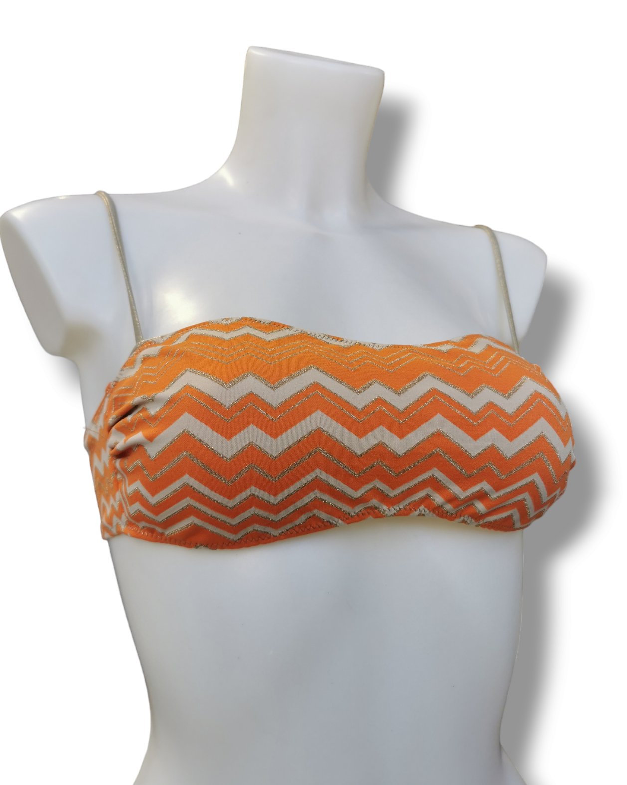 Bikini Fascia con stampa chevron e lurex, imbottitura con coppe estraibili. Coppa B.
