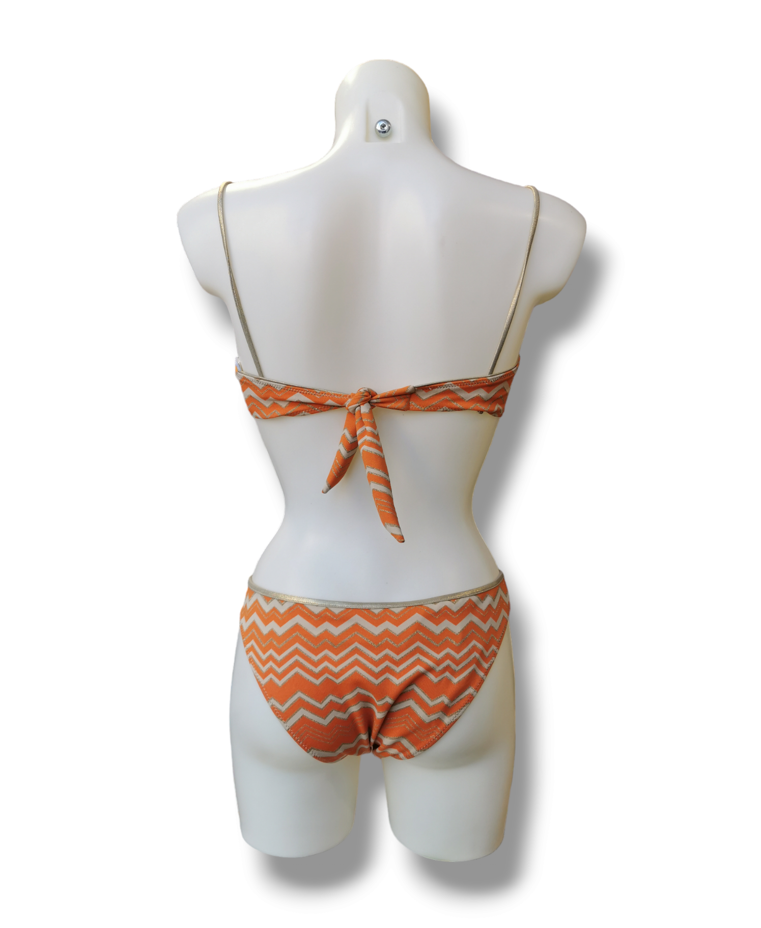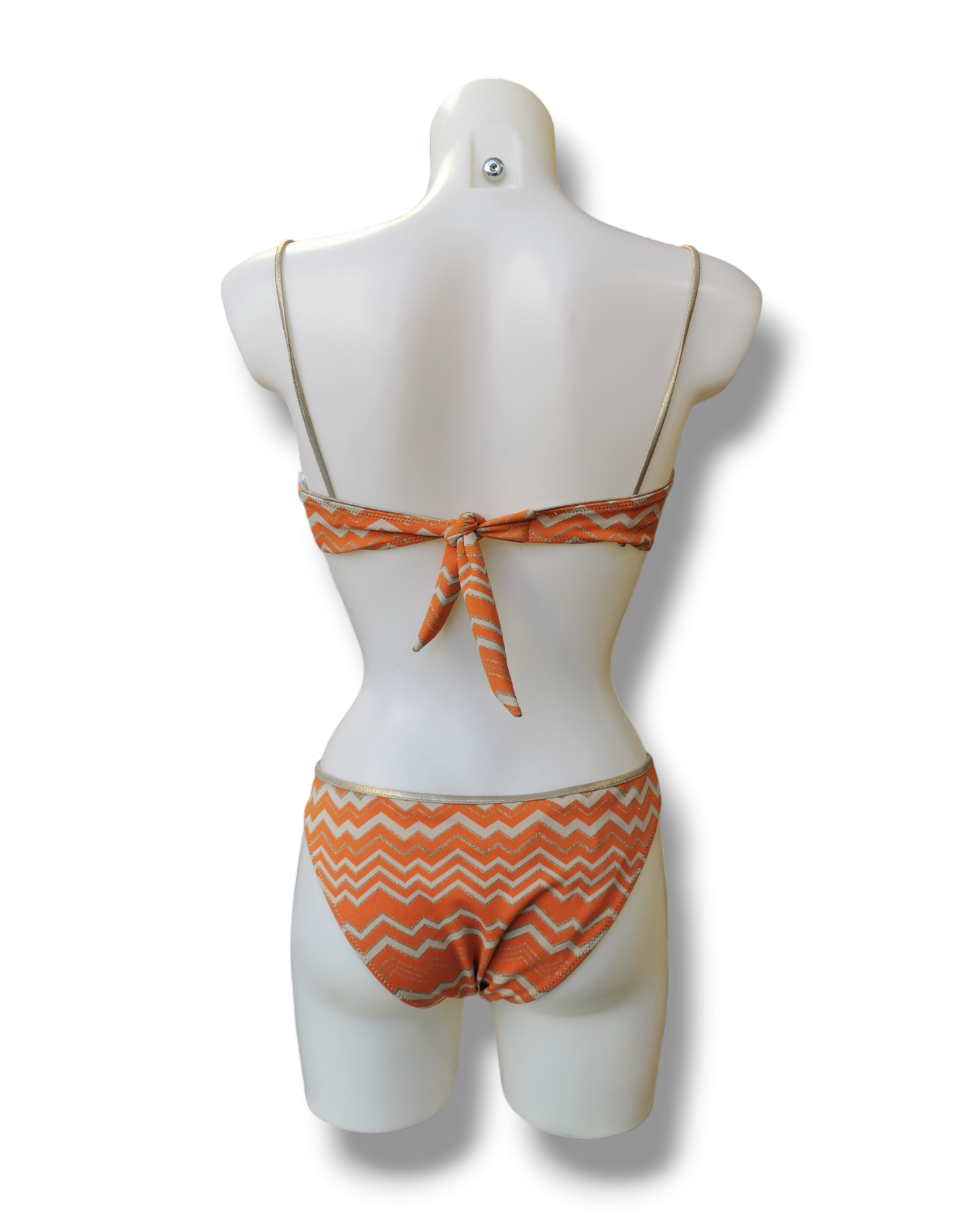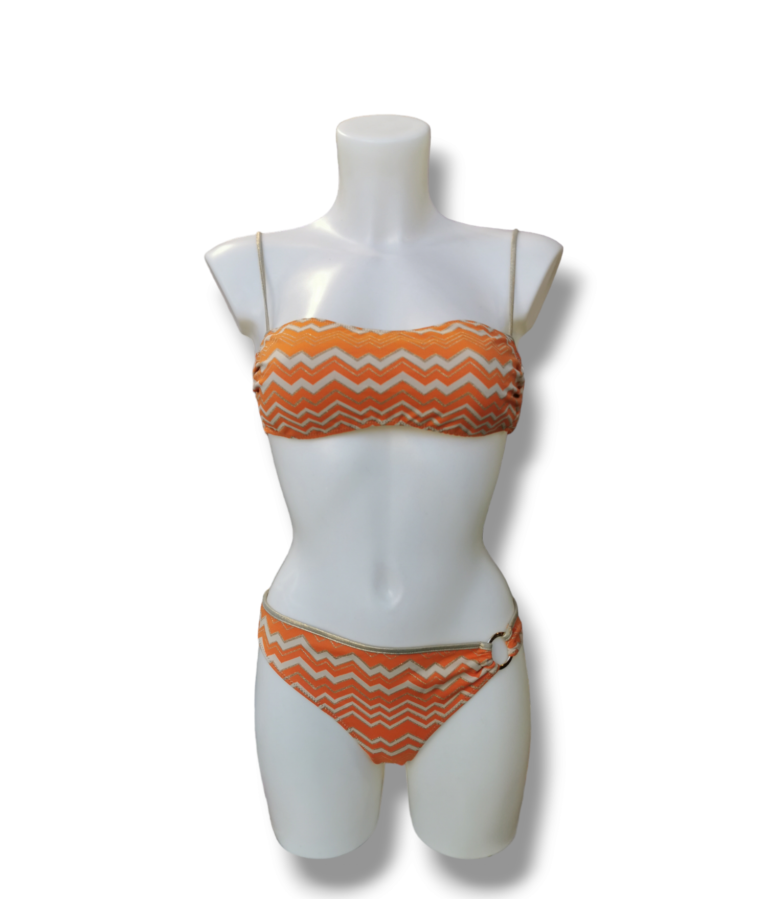 Bikini Fascia con stampa chevron e lurex, imbottitura con coppe estraibili. Coppa B.