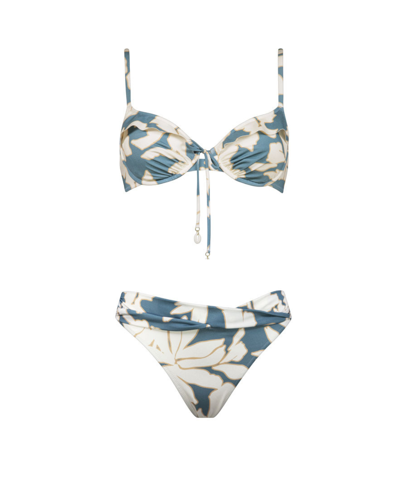 Bikini con Top con ferretto e slip completamente foderato, con drappeggio sui fianchi.