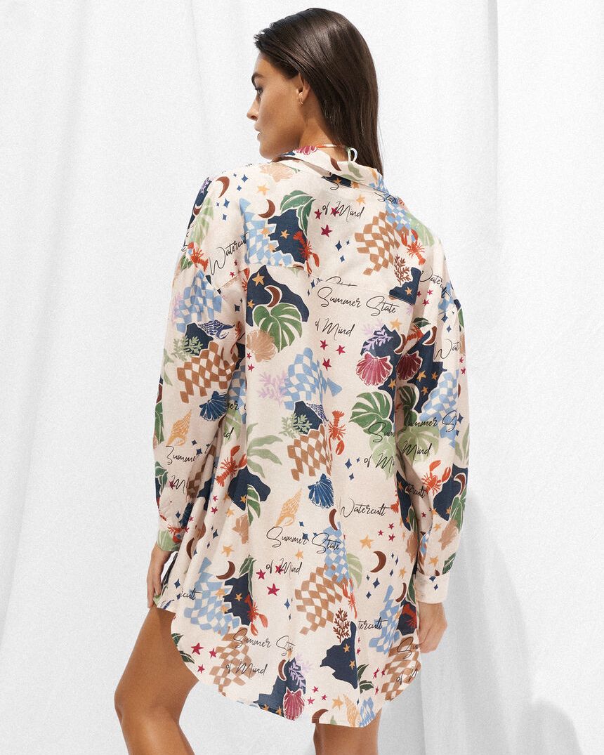 Camicia da spiaggia corta con bottoni e maniche lunghe