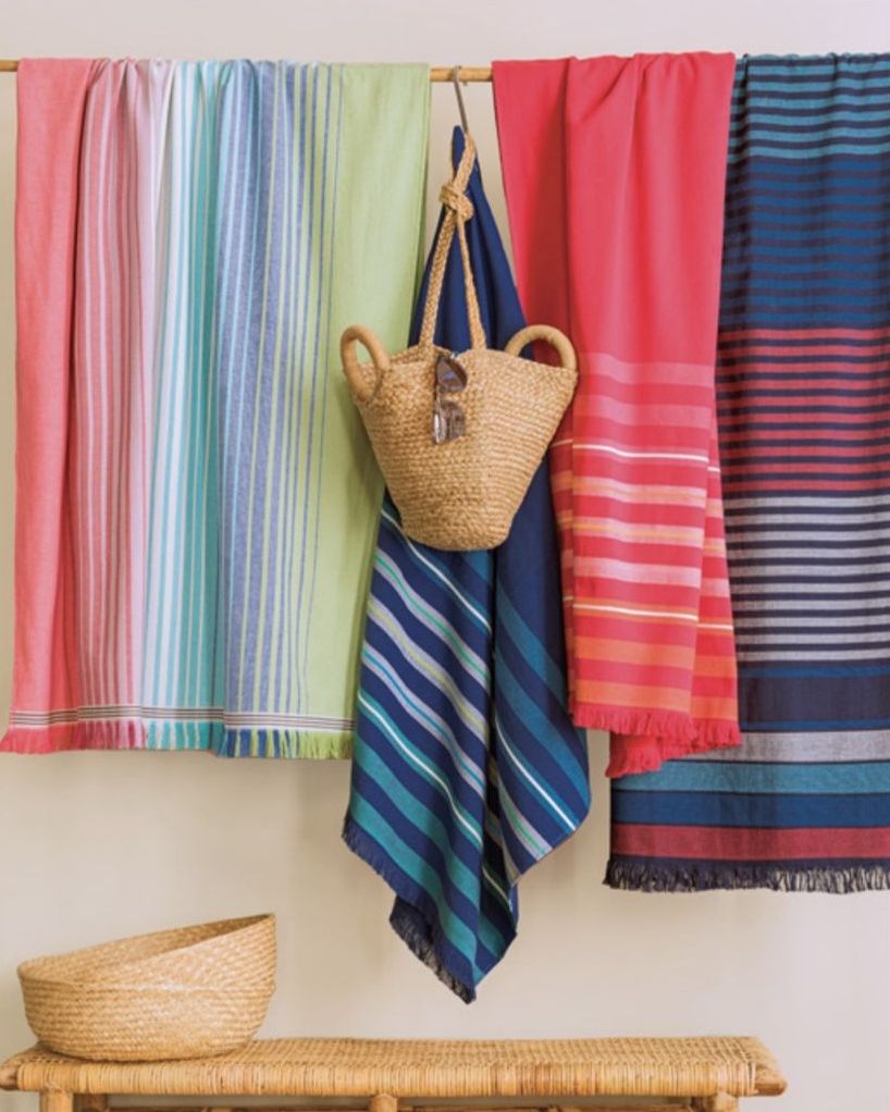 Telo mare Fouta da un lato in cotone e dall’altro microspugna, con frange.