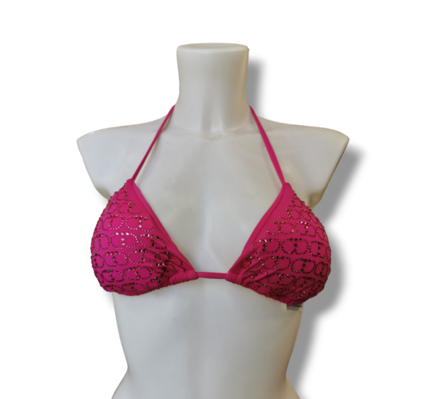 Triangolo da bagno a tendina imbottito con coppe estraibili, applicazione di strass con grafica logo Oval T.
