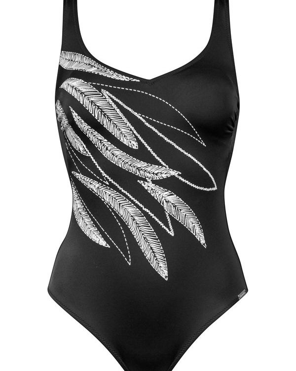 Costume da bagno intero con inserti bianchi, la lycra modella leggermente la figura donando un effetto snellente