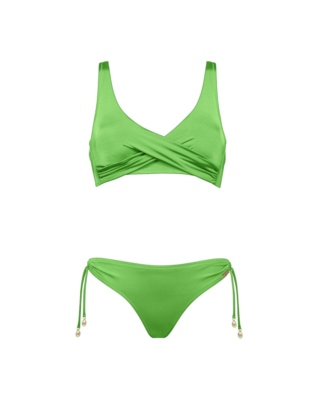 Top incrociato con cinghie staccabili e regolabili, imbottiture estraibili totalmente foderato.
