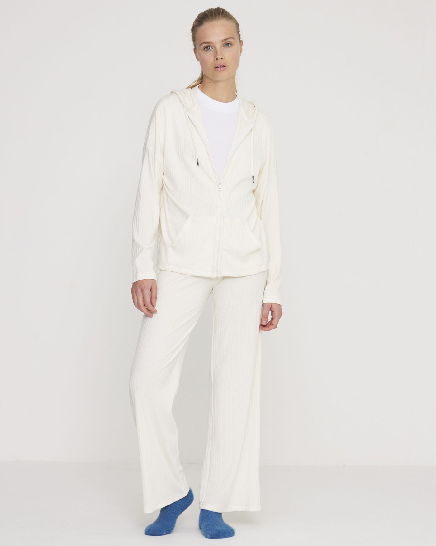 Completo loungewear donna in maglina a coste e zip, pantalone senza polsino
